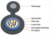 Feature: Low dispersion and attenuation, proper design, precise control for fiber excess length render the cable excellent mechanical and environmental characteristics. Steel-PE sheath makes cable have nice moisture resistance, small cable diameter, light cable weight, self supporting, easily to install. Applications: Long-distance communication, local trunk line, CATV and computer networks system Installation method: Aerial Operating temperature: -40℃~+70℃ Cable specifications: